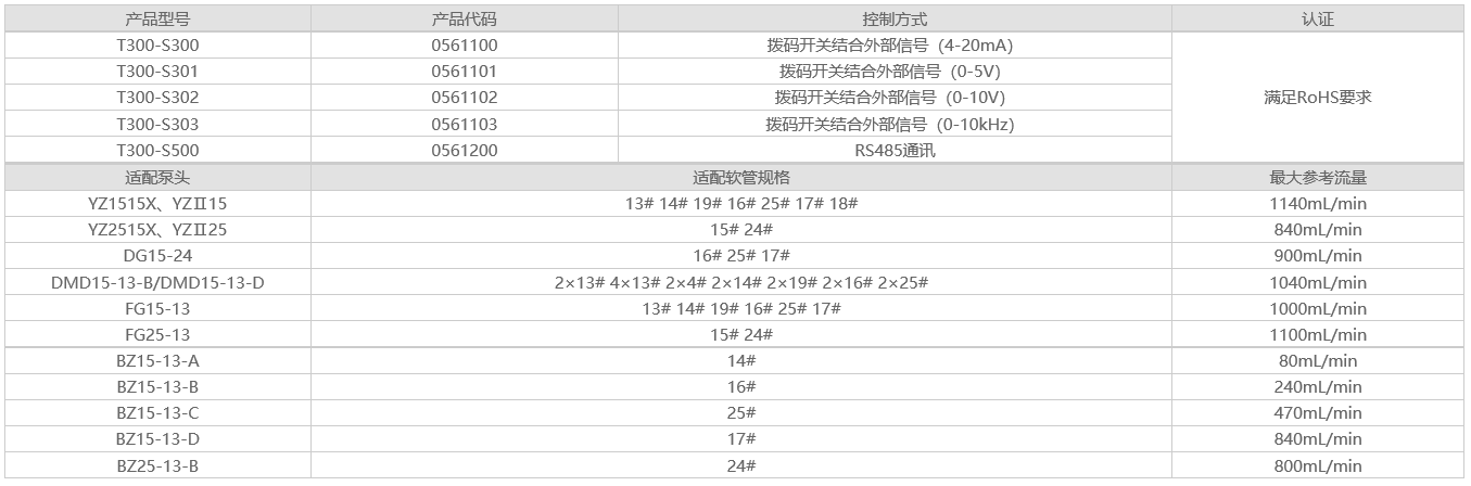 T300系列產(chǎn)品是主要針對配套客戶設(shè)計(jì)研發(fā)的蠕動泵驅(qū)動器,最高轉(zhuǎn)速為300rpm,轉(zhuǎn)速可調(diào)節(jié),適配多種泵頭,最大能提供1140mL/min的參考流量,可采用底板和面板兩種安裝方式,直流24V供電,體積小,結(jié)構(gòu)緊湊,適合配套使用。
