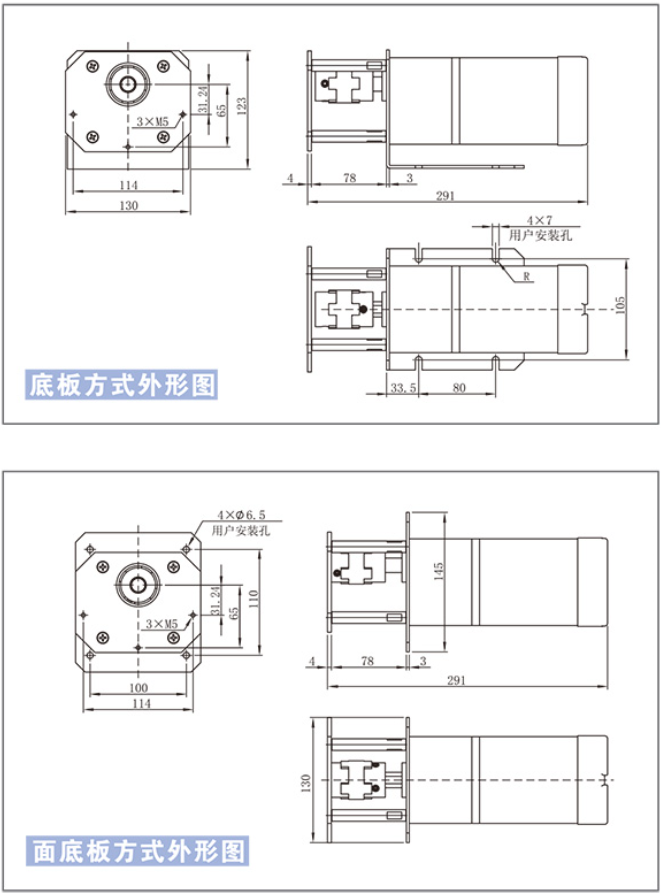 裝配90-2電機面板式安裝:(長×寬×高)291×130×145(mm)