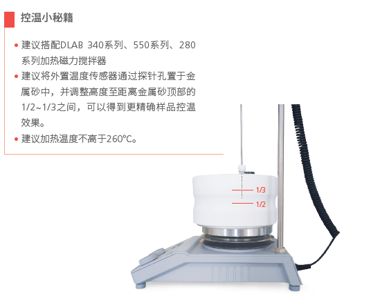 • 模塊配有外置探針孔,搭配DLAB加熱磁力攪拌器可實(shí)現(xiàn)外部精確控溫;