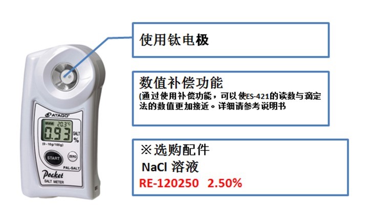 PAL-SALT Mohr 迷你數(shù)顯鹽度計(jì),又稱為腌菜汁鹽度計(jì),醬菜汁含鹽量較高需要稀釋,PAL-SALT Mohr鹽度計(jì)是一款環(huán)保型、高性價(jià)比的鹽度測量工具。