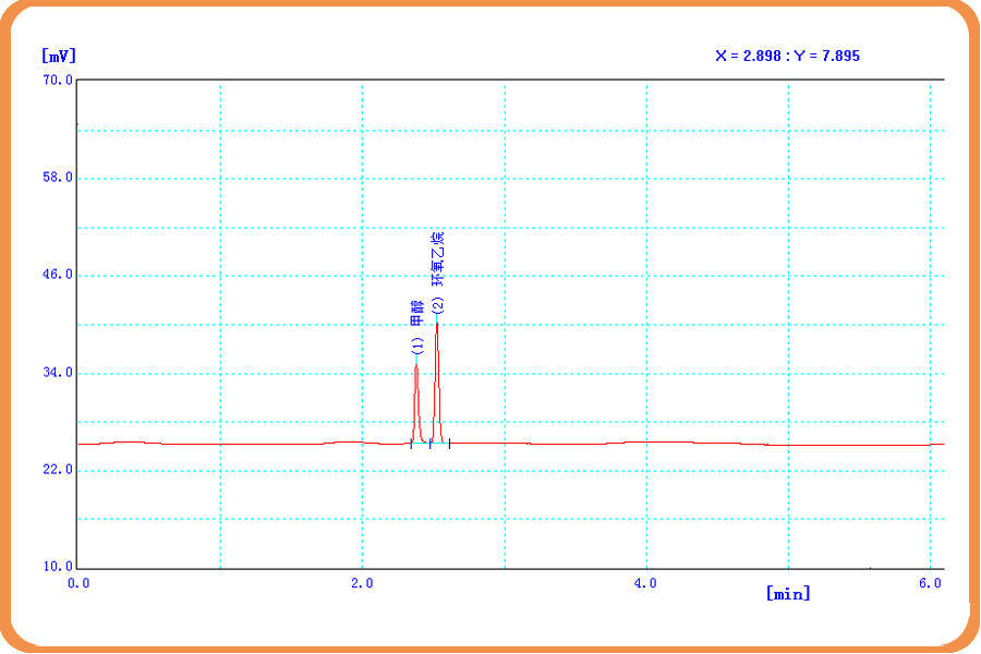 環(huán)氧乙烷工作曲線為:y=489.986+3889*x   相關(guān)系數(shù):0.9997
