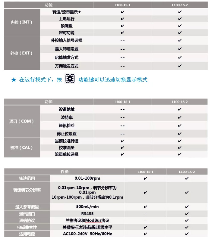 L100-1S具有流量顯示和校準功能,可提供高分辨率的轉速控制,實現(xiàn)超高精度、更寬泛的流量調節(jié)范圍。