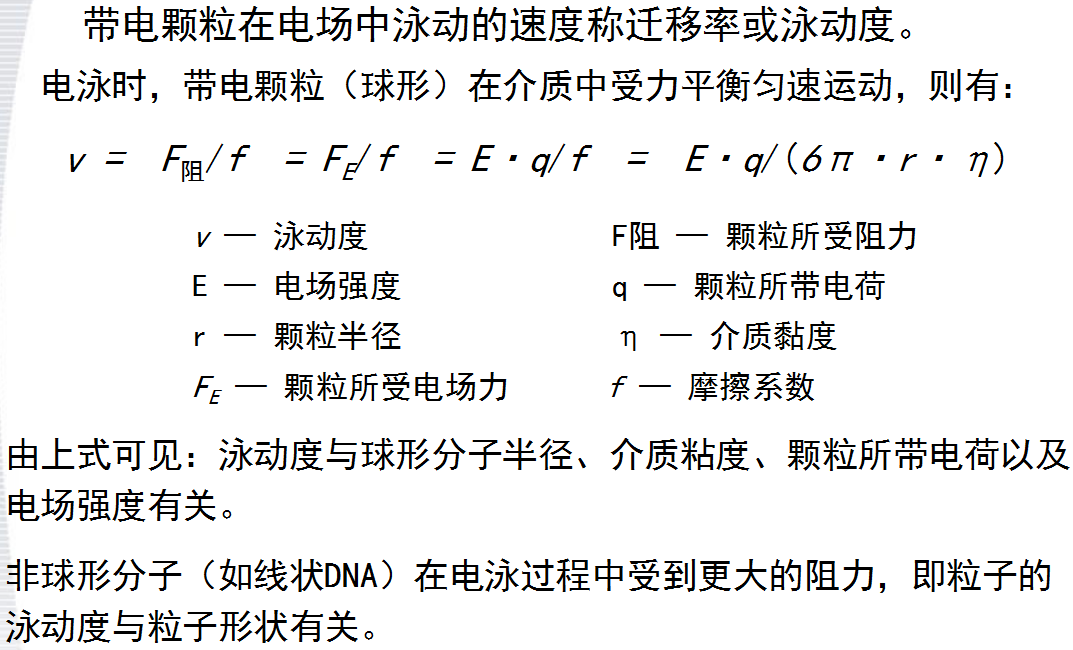 顆粒直徑、形狀以及所帶靜電荷量對(duì)泳動(dòng)度有較大的影響。一般來(lái)說(shuō),顆粒的靜電荷量越大,或其直徑越小,或其形狀越接近球形,在電場(chǎng)中的泳動(dòng)速度就越快。反之,則越慢
